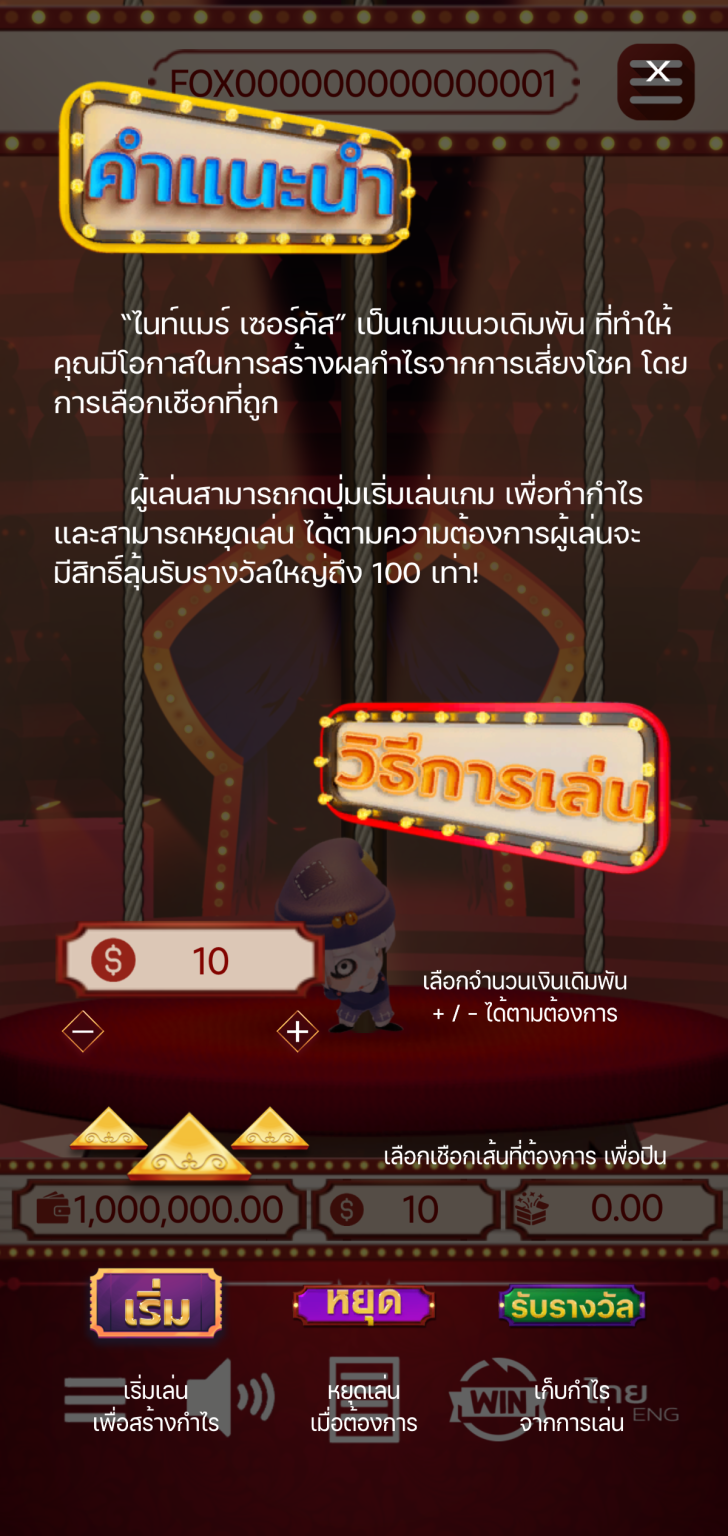 “Nightmare Circus” is a betting game that gives you the opportunity to Making profits from gambling by choosing the right rope.and collect as much prize money from the show as possible